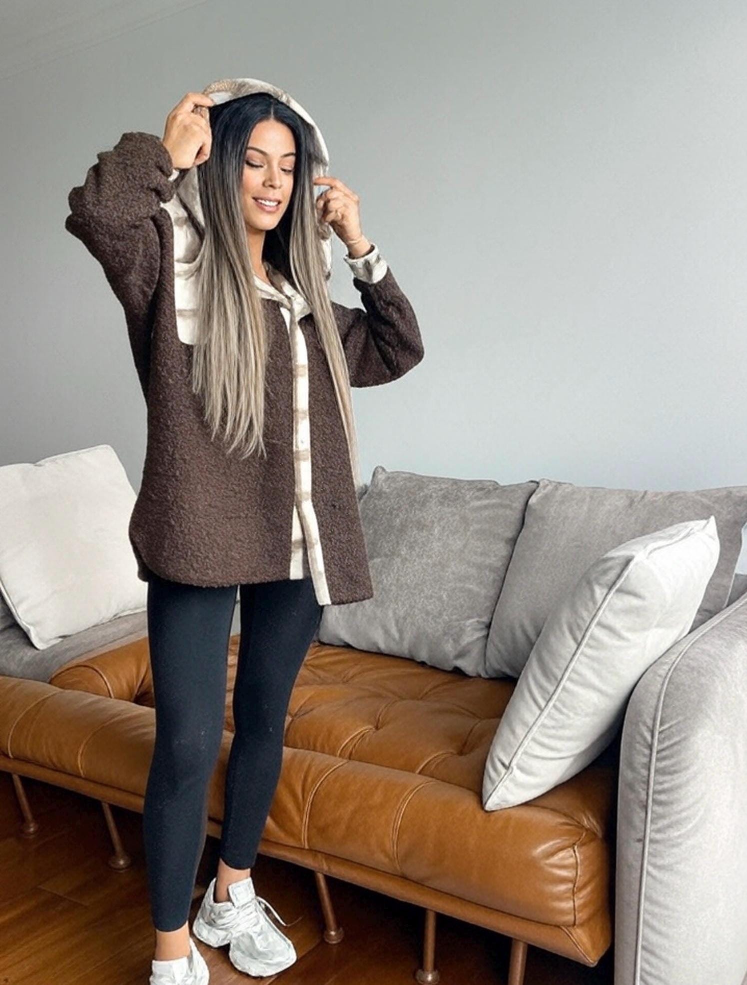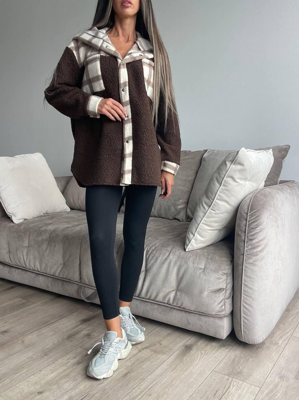 This cozy shacket is a must-have for autumn and winter wardrobes. It’s warm, breathable, and versatile – looks great with leggings, jeans, or joggers.