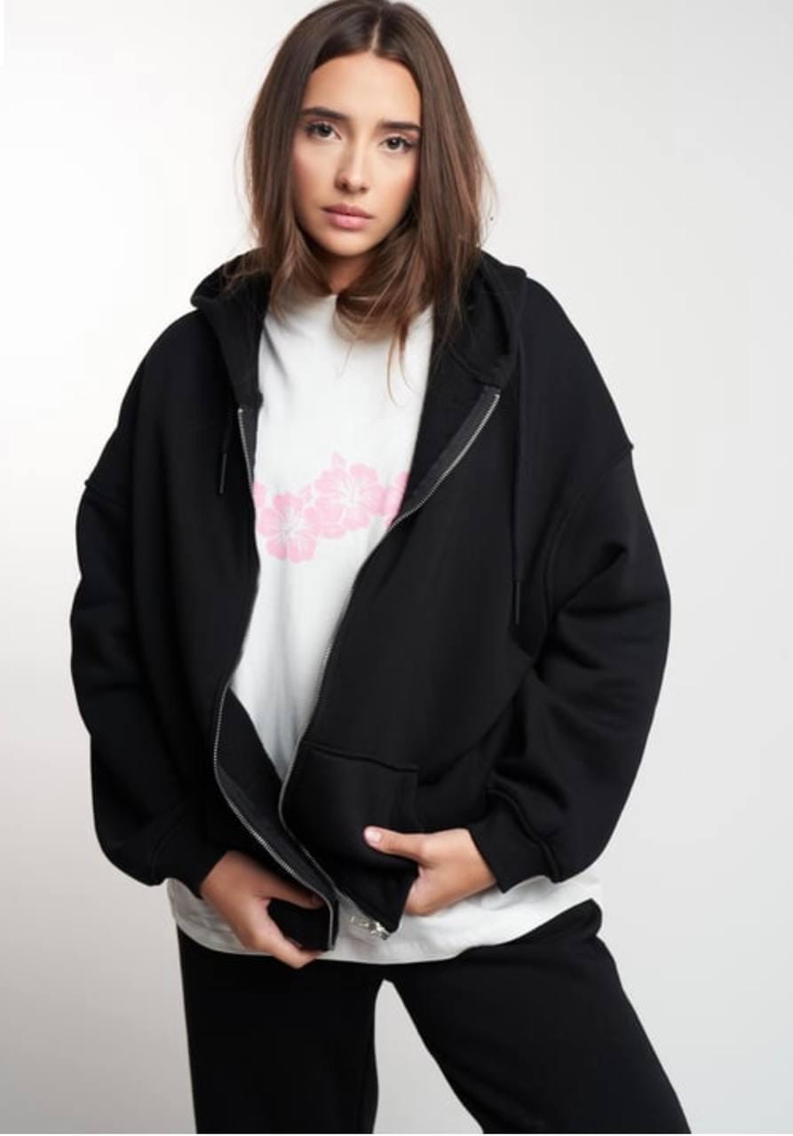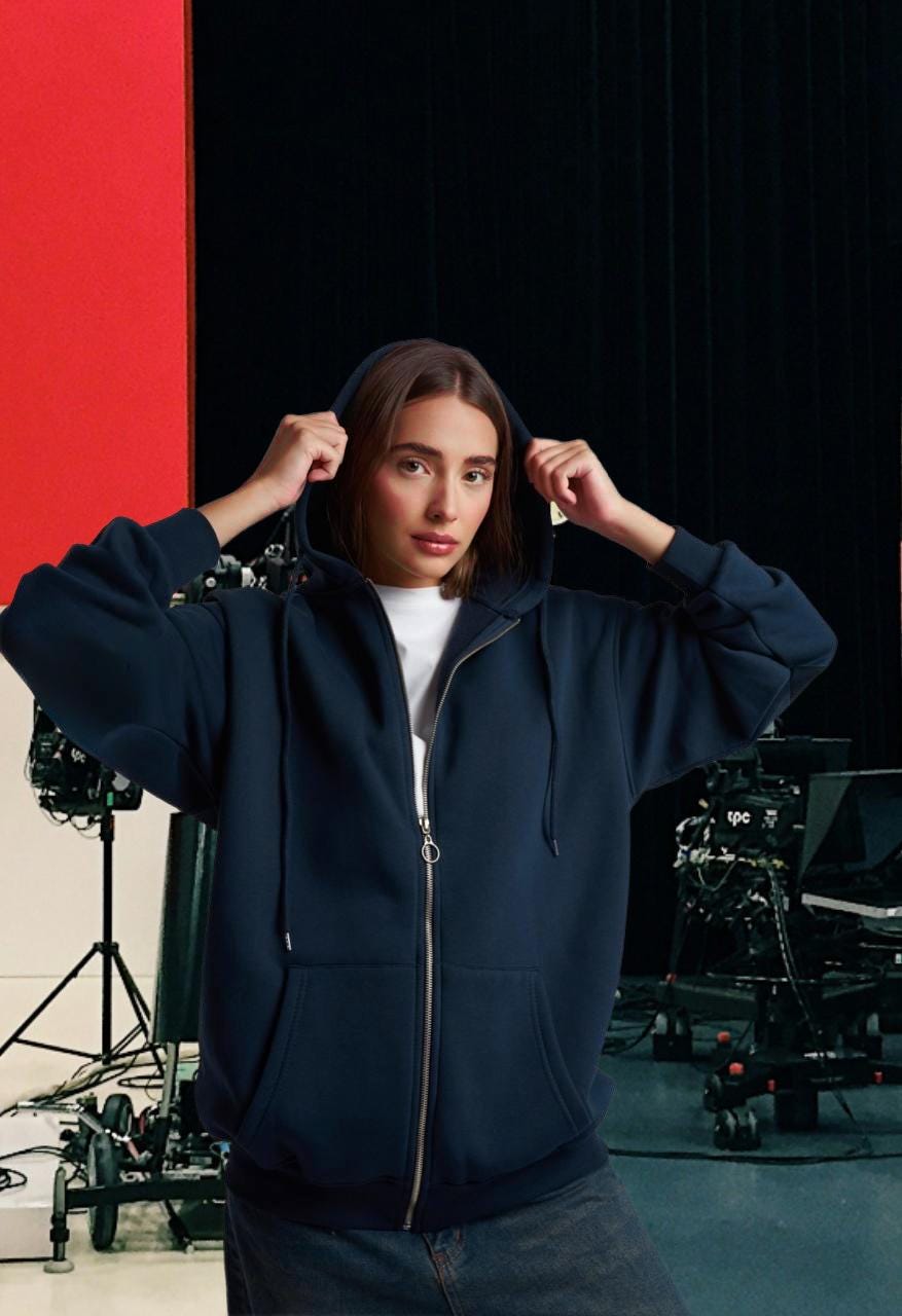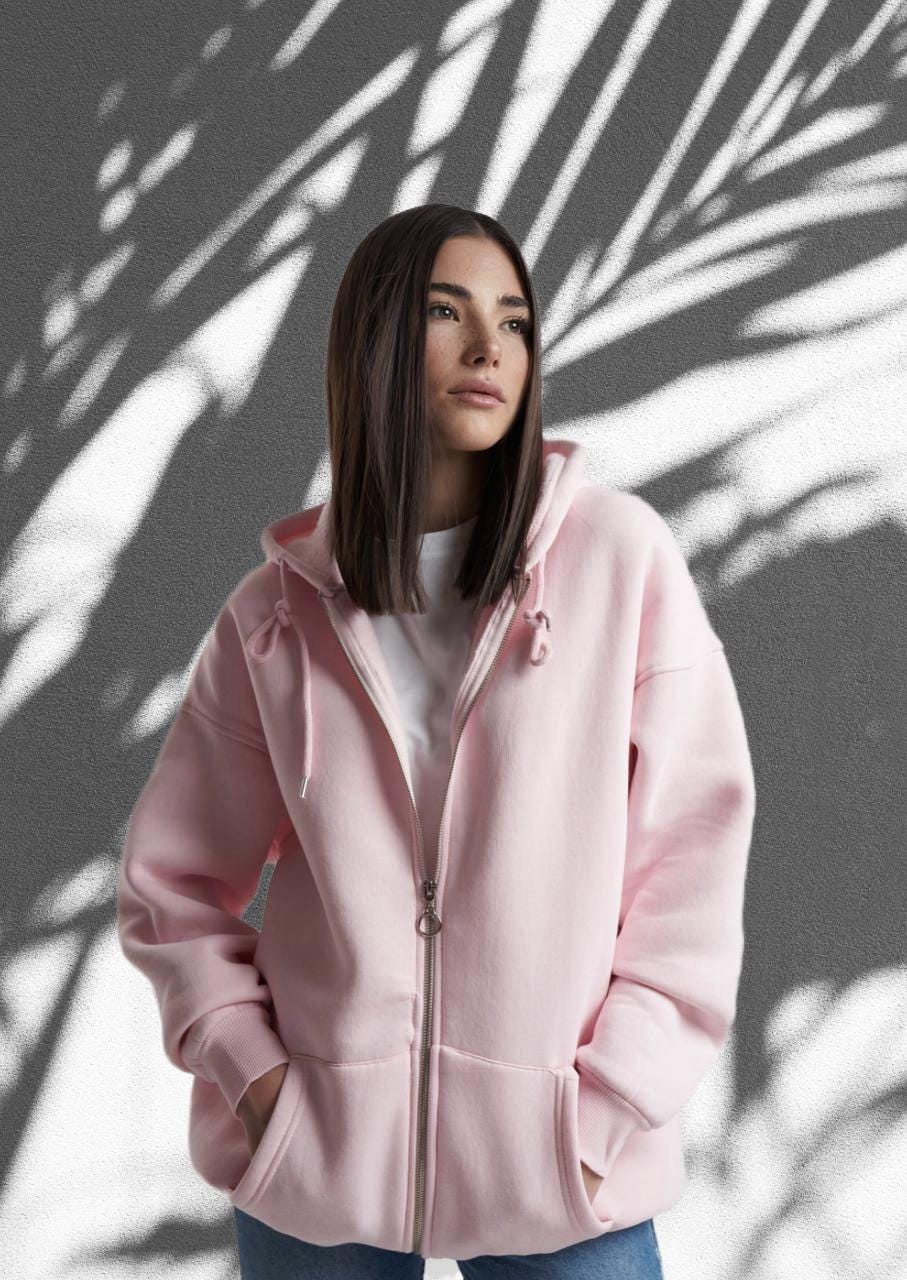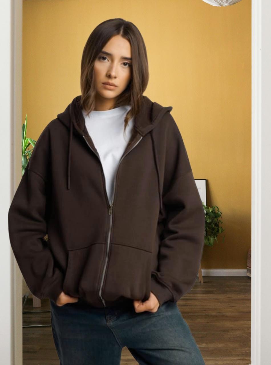 Stay warm and stylish with this soft oversized zip-up hoodie. Made from a high-quality compact fleece blend, it features a full front zipper, large pockets, and a comfortable hood. The inner side is brushed for extra softness and warmth — perfect for cool weather or relaxed days.