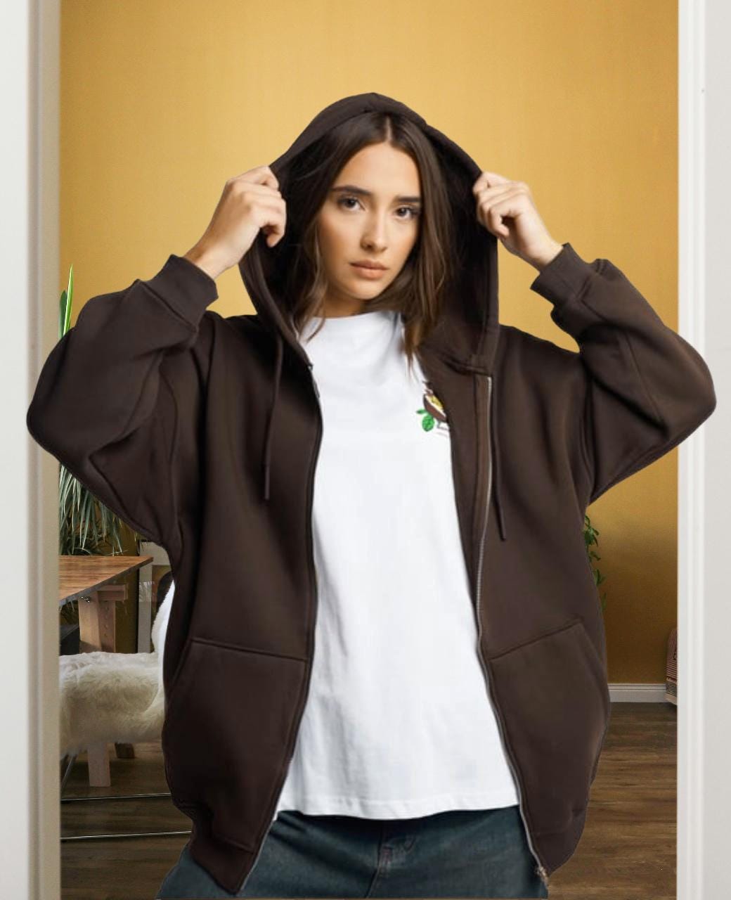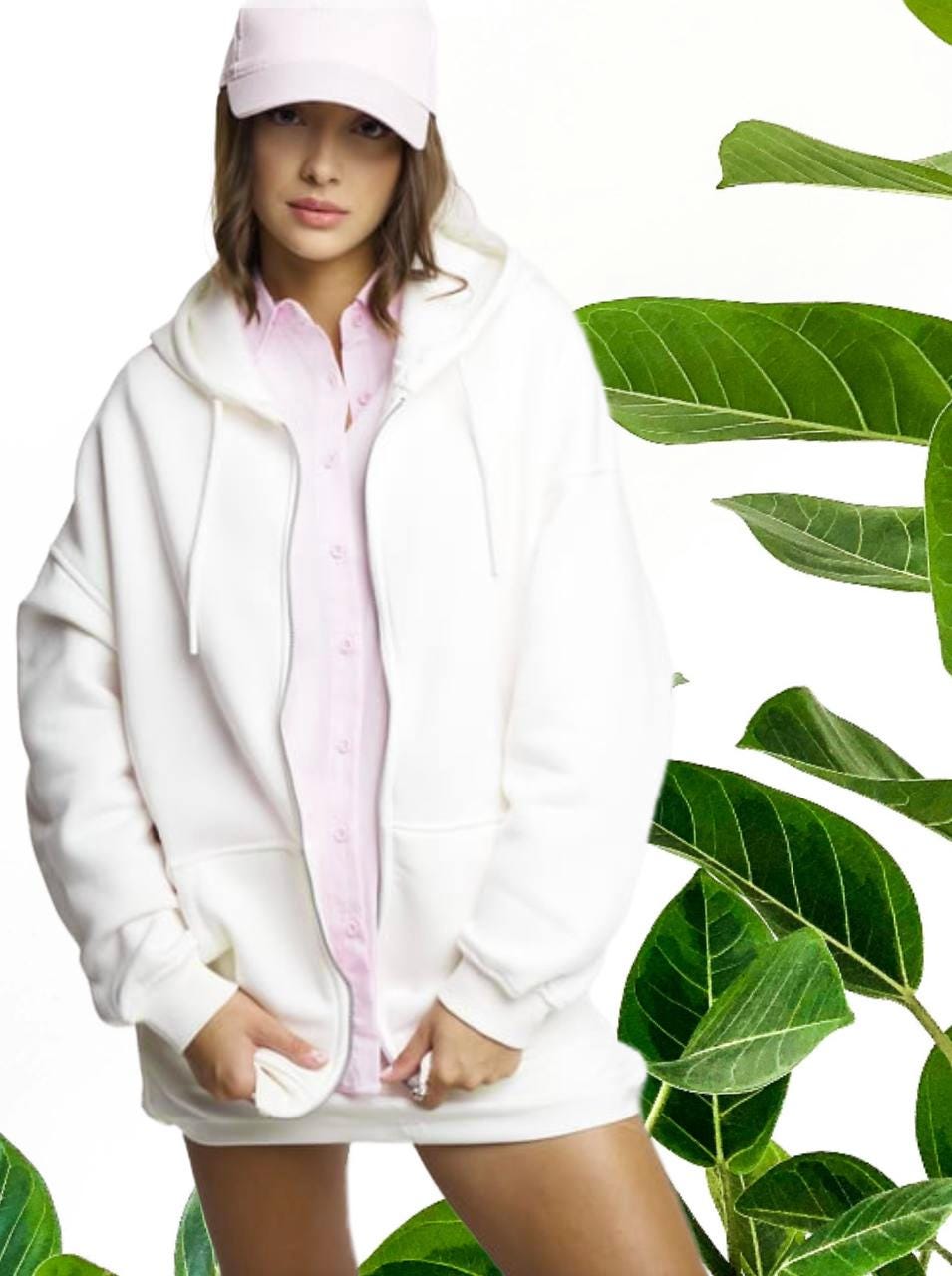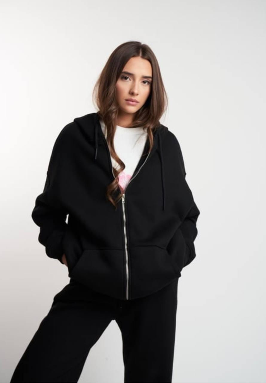 Stay warm and stylish with this soft oversized zip-up hoodie. Made from a high-quality compact fleece blend, it features a full front zipper, large pockets, and a comfortable hood. The inner side is brushed for extra softness and warmth — perfect for cool weather or relaxed days.