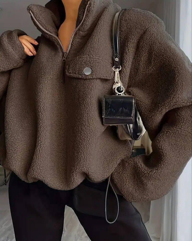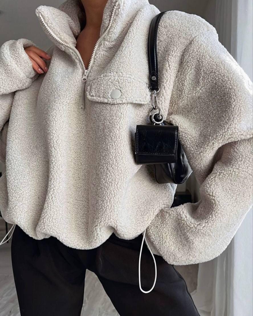 Wrap yourself in softness with this cozy Teddy fleece pullover — the perfect mix of warmth, comfort, and effortless style. It features a half-zip design, soft fluffy texture, and a relaxed loose fit that flatters any body type. Perfect for chilly days, casual walks, travel, or cozy evenings at home.