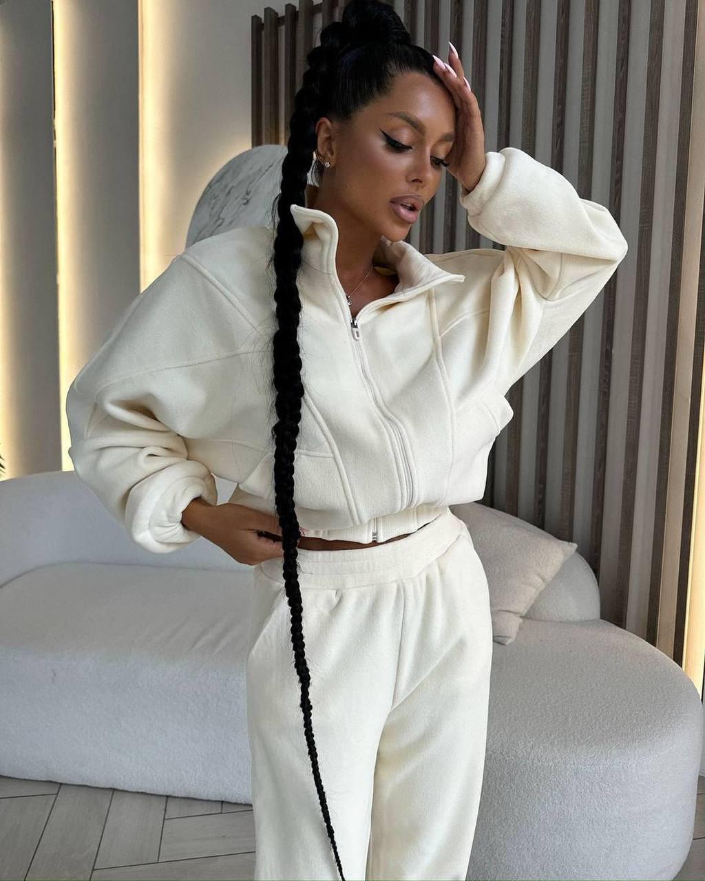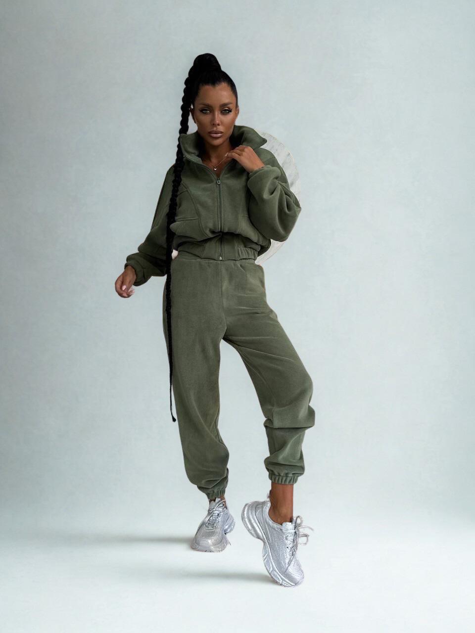 Details: • Fabric: Double-sided warm fleece • Sizes: S, M, L • Colors: Graphite, Black, Milk, Khaki, Chocolate • Design: Zip-up sweatshirt + high-waist pants • Soft, breathable, and durable • Handmade with care