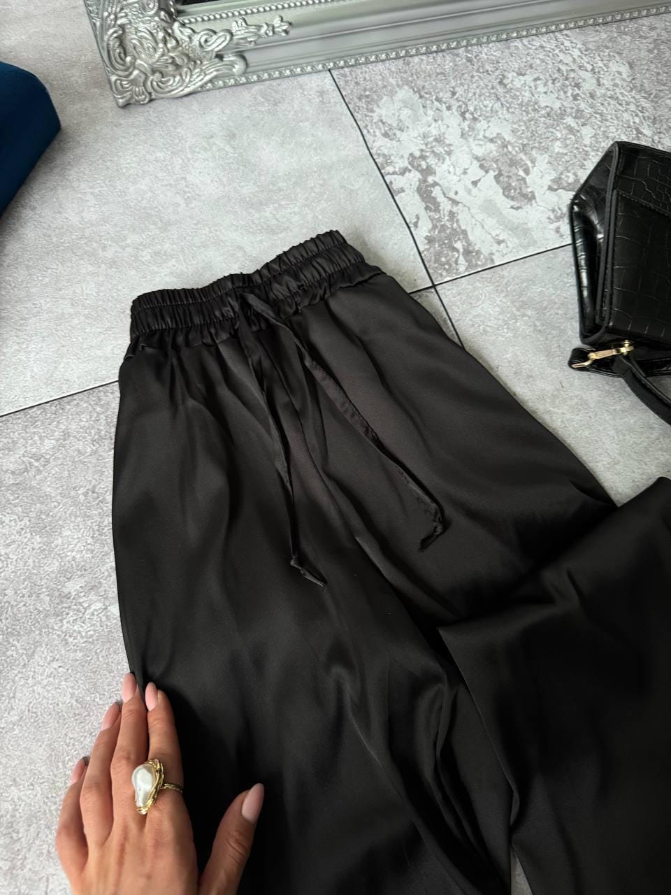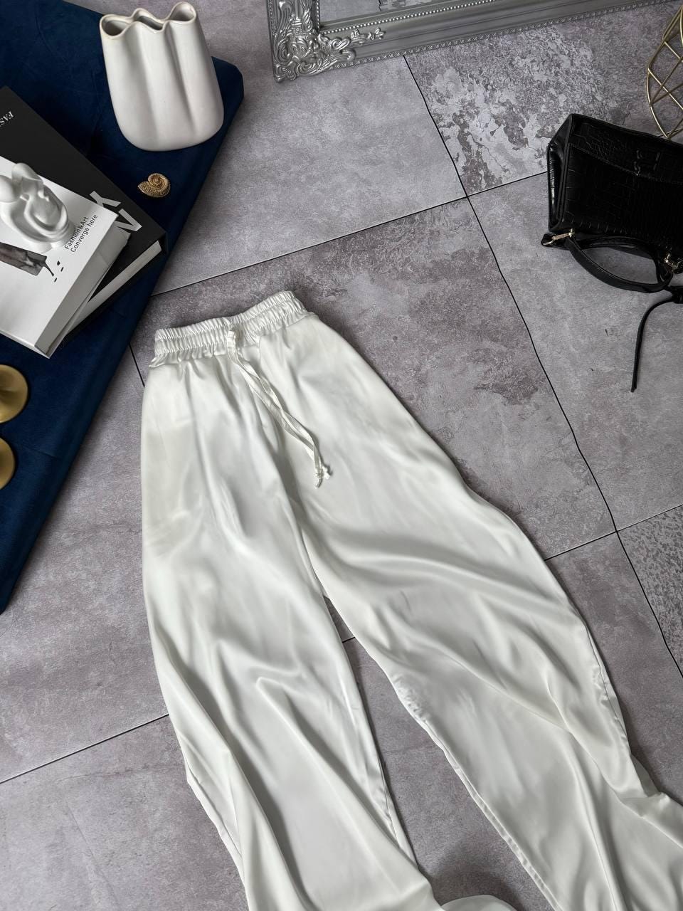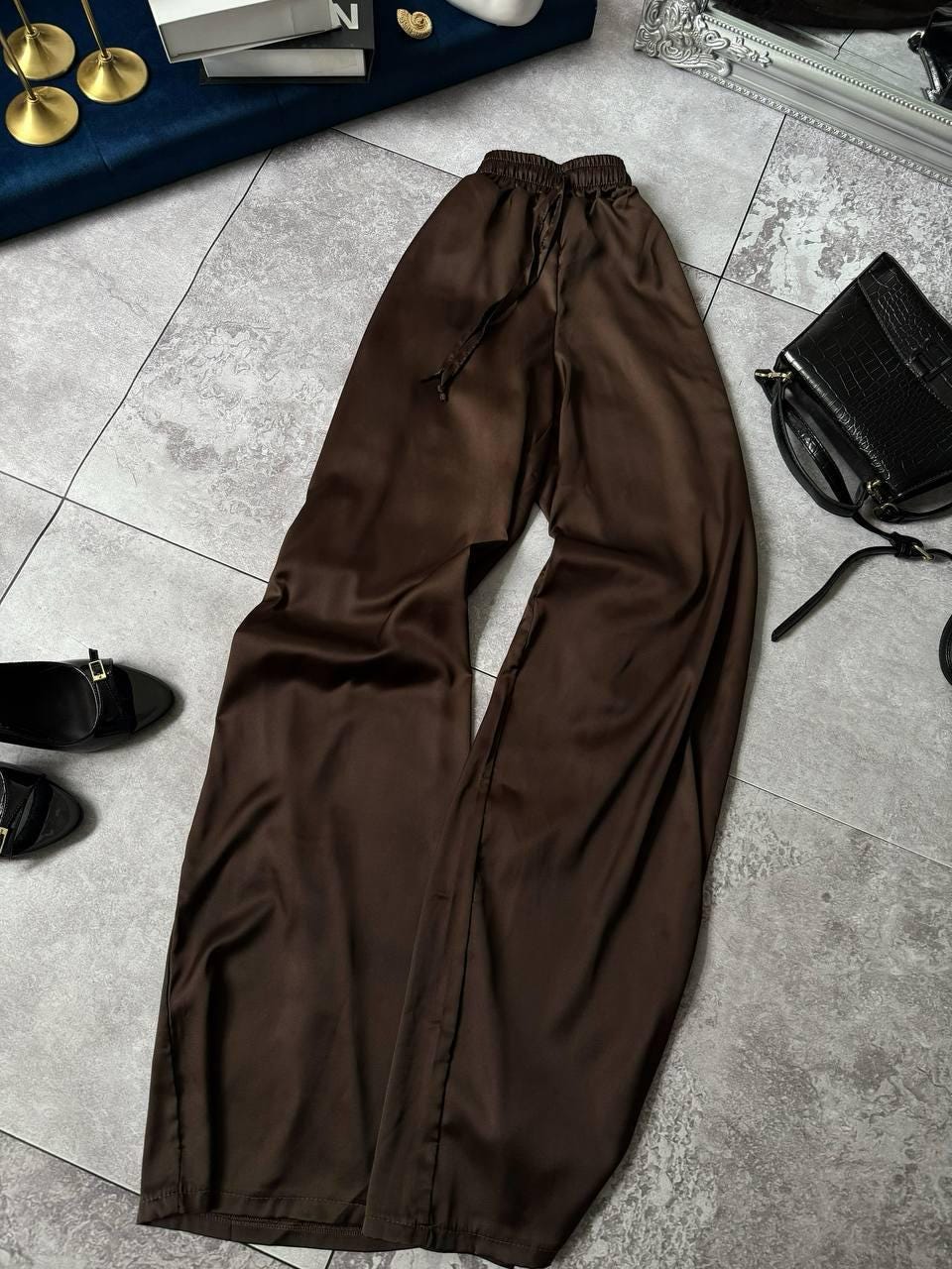 Details: • Fabric: Armani Silk • Colors: Chocolate, Black, Milk • Sizes: S, M, L • High-waist fit with elastic waistband and drawstring • Soft, lightweight, and elegant sheen • Handmade in Ukraine