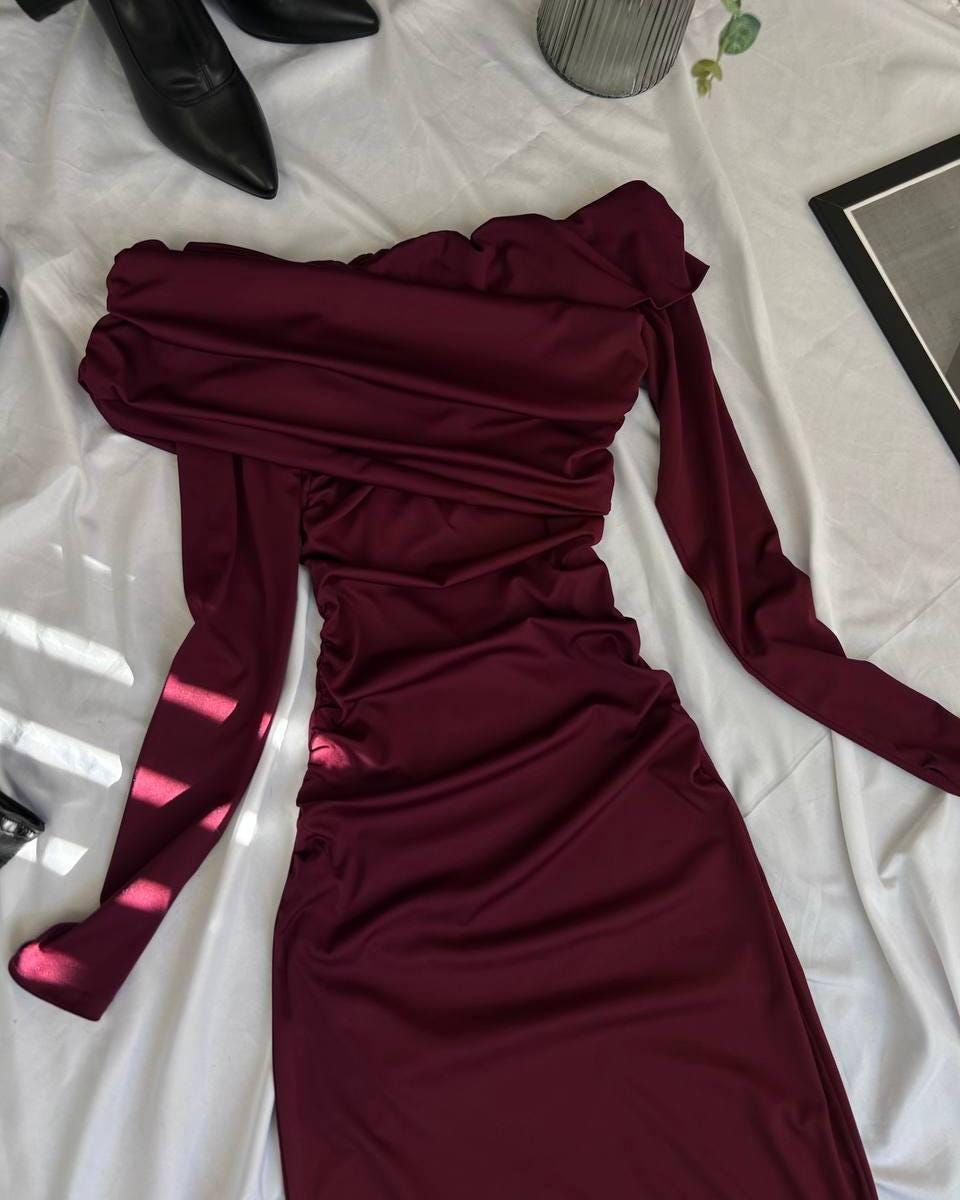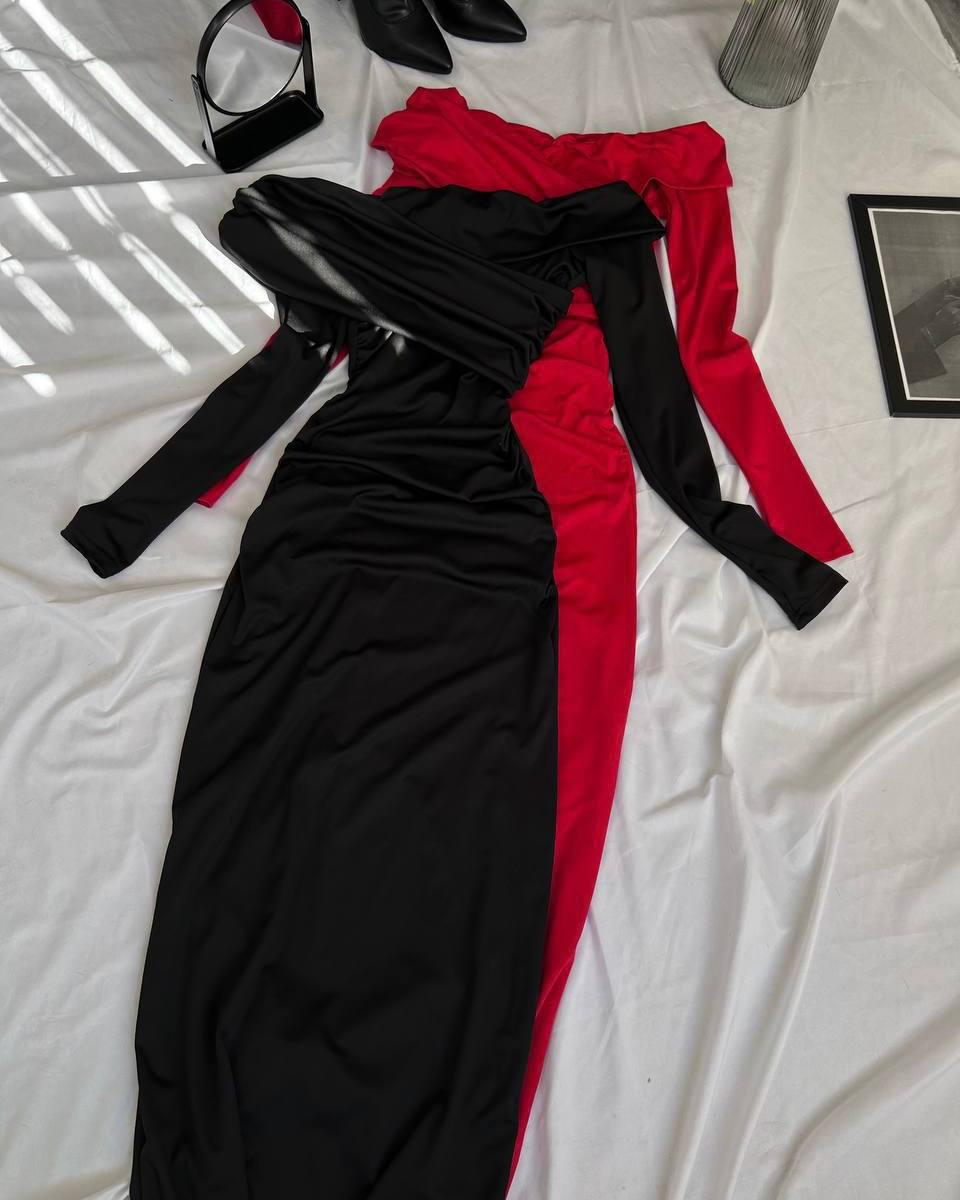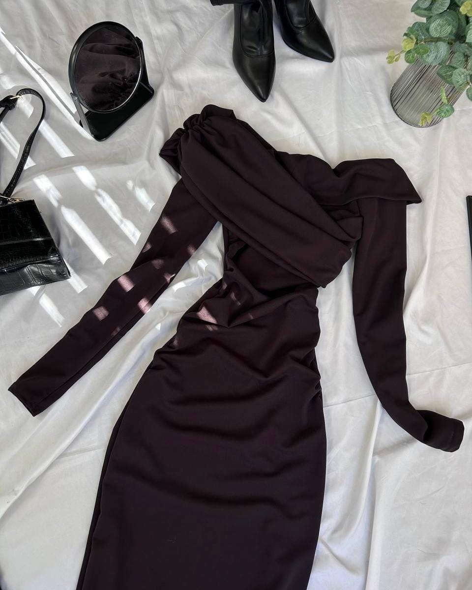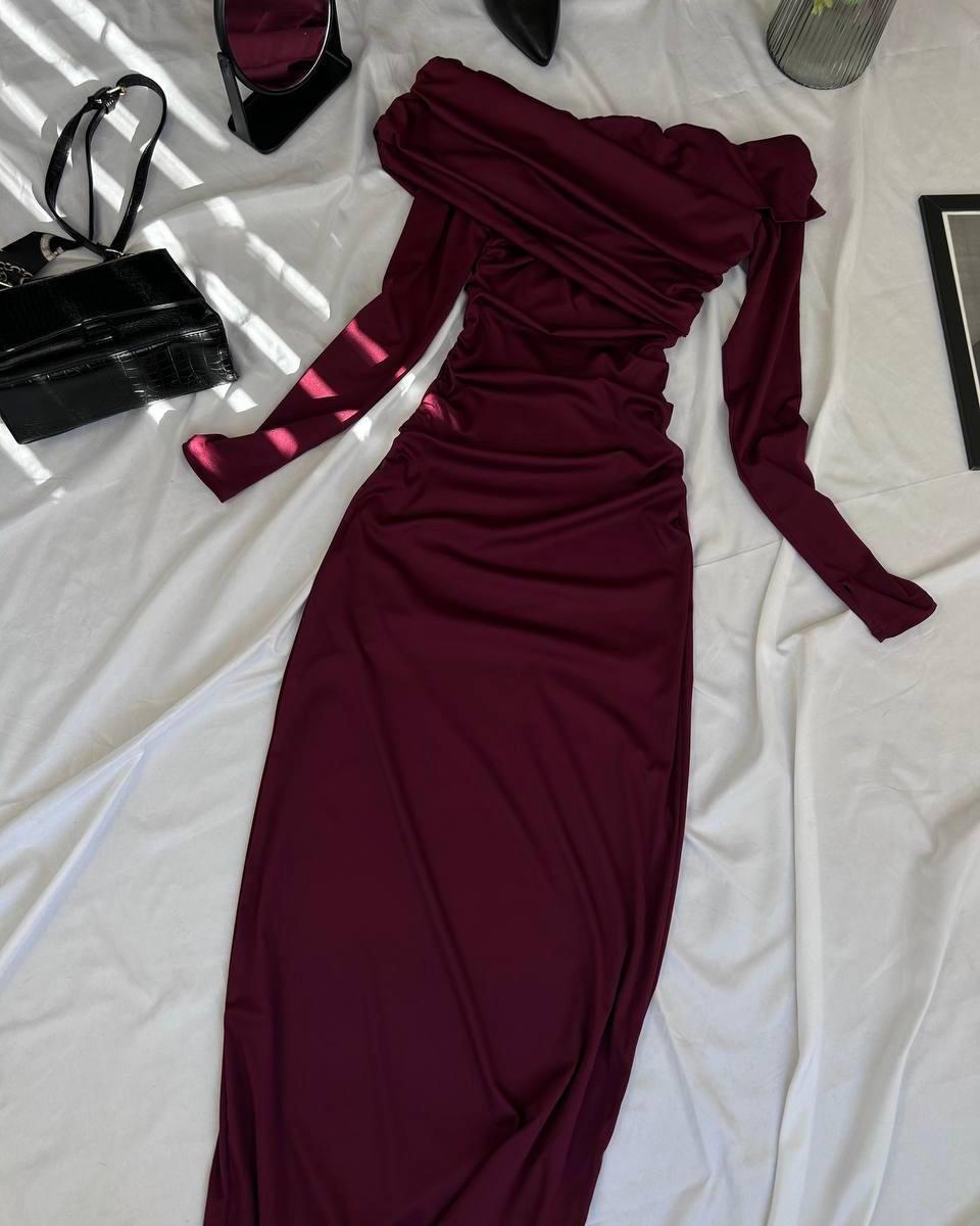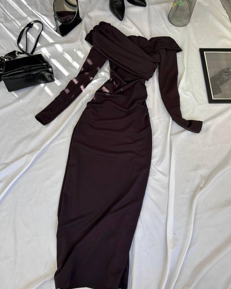 A refined and feminine silhouette that speaks volumes without a word. This off-shoulder maxi dress is crafted from smooth, form-fitting microdiving fabric that enhances your curves while maintaining comfort and ease of movement. The elegant draping and subtle stretch make it ideal for evening events, dates, or celebrations. The fabric’s luxurious texture creates a sophisticated look with a soft satin-like finish. Available in rich, expressive shades — black, burgundy, red, and chocolate — this dress is your go-to choice for any occasion where you want to stand out gracefully.