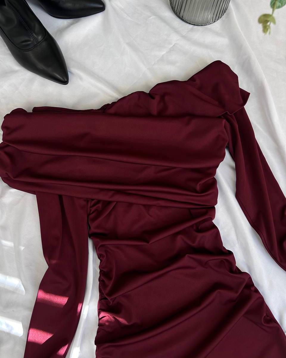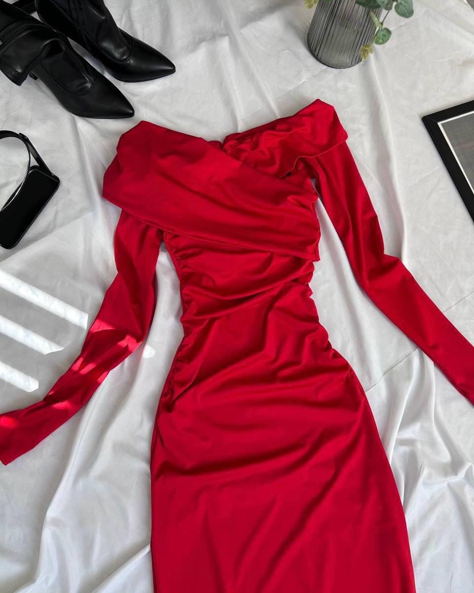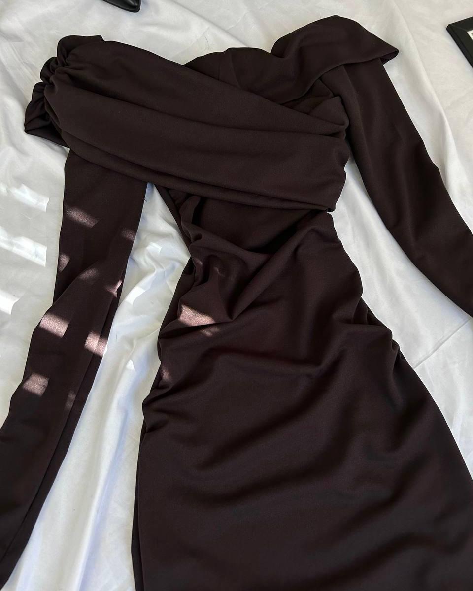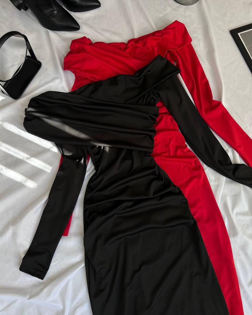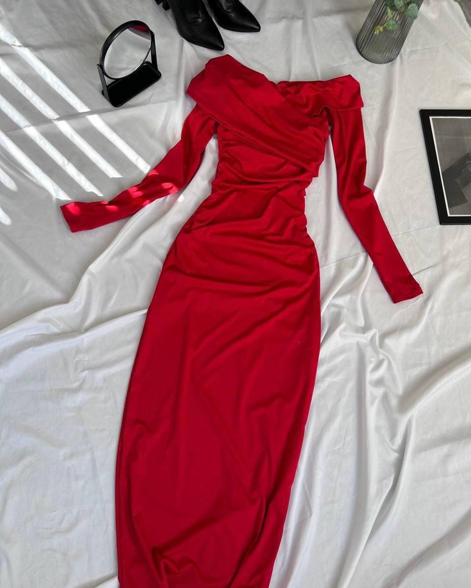 A refined and feminine silhouette that speaks volumes without a word. This off-shoulder maxi dress is crafted from smooth, form-fitting microdiving fabric that enhances your curves while maintaining comfort and ease of movement. The elegant draping and subtle stretch make it ideal for evening events, dates, or celebrations. The fabric’s luxurious texture creates a sophisticated look with a soft satin-like finish. Available in rich, expressive shades — black, burgundy, red, and chocolate — this dress is your go-to choice for any occasion where you want to stand out gracefully.