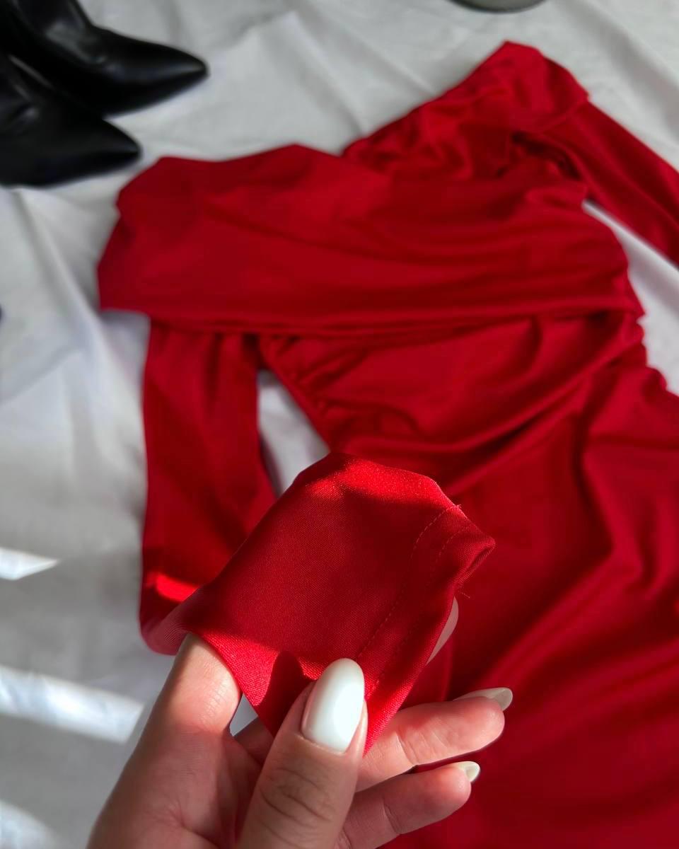 Details: ✨ Fabric: Microdiving (soft, elastic, and smooth to the touch) 📏 Sizes: S, M, L 🎨 Colors: Black, Burgundy, Red, Chocolate 💫 Off-shoulder neckline with ruched detailing 🤍 Slim fit with a flattering drape 🇺🇦 Handmade with precision and care